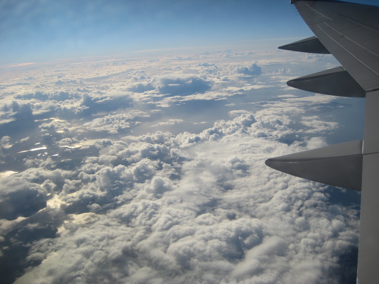 Bevor wir uns heute über den Wolken bewegten, gab es natürlich die obligatorischen Verabschiedungen von Freund und Familie. Danach kurz Schuhe ausziehen und sich gründlich sicherheitsrelevant abtasten lassen und schon saß man im Flieger der Continental Airlines, der pünktlich um 9:45 Uhr das gelobte, alte Europa verließ und etwa 9 Stunden für den Weg benötigte.