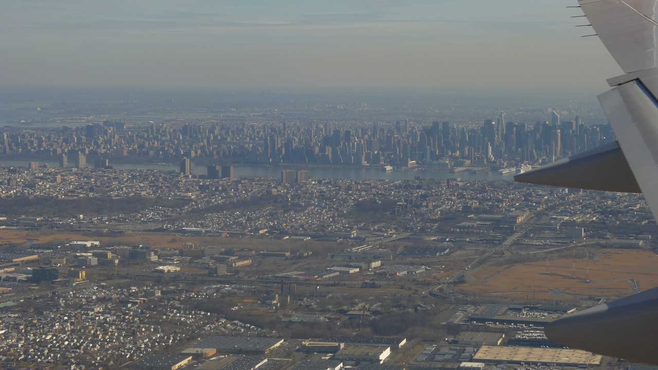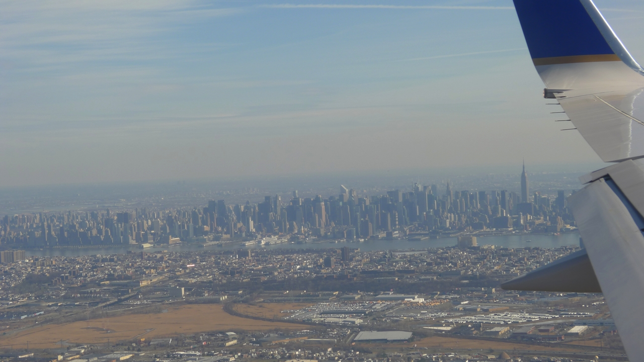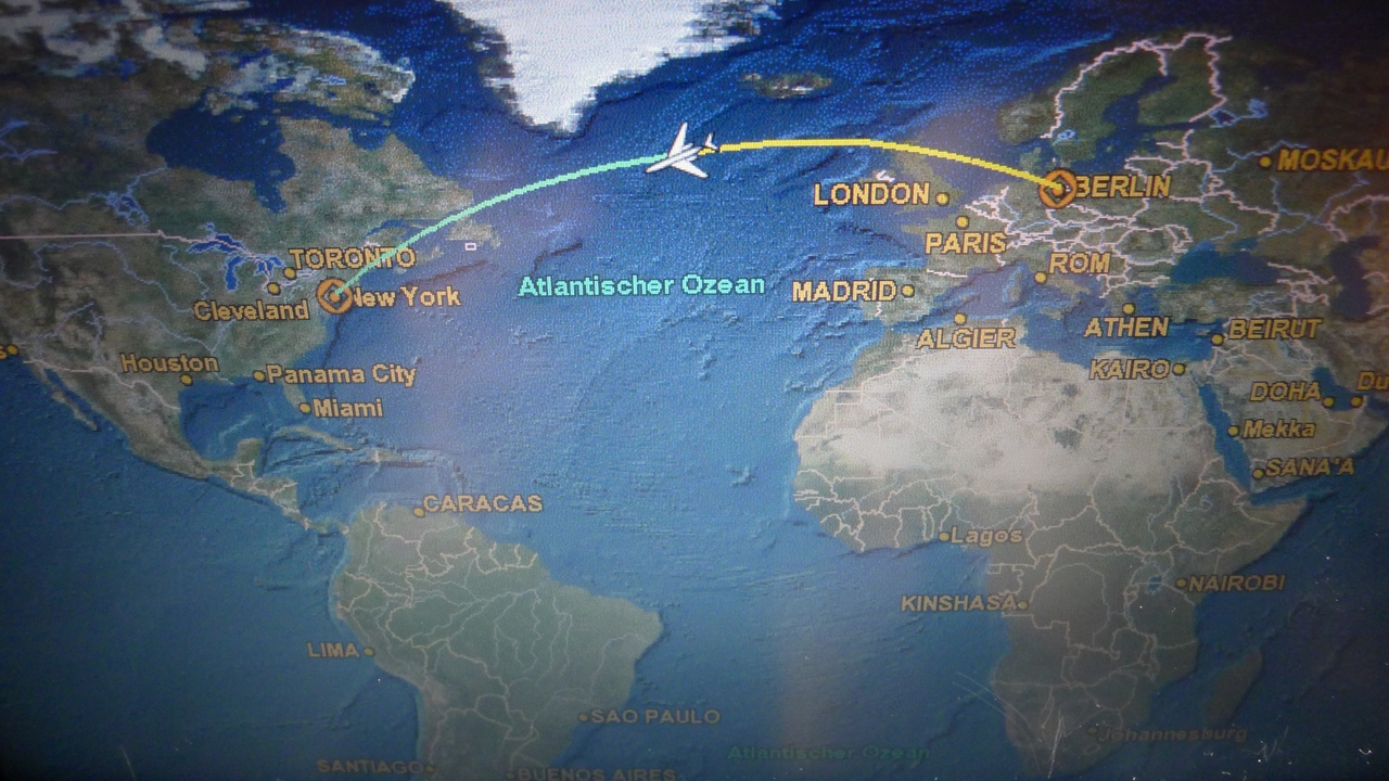 Irgendann waren die zähen neun Stunden auch vorbei (ich vefolgte die letzte Stunde gespannt auf der virtuellen Flugroute im Boardcomputer) und wir landeten in Newark, mit der Skyline von New York in Sichtweite.