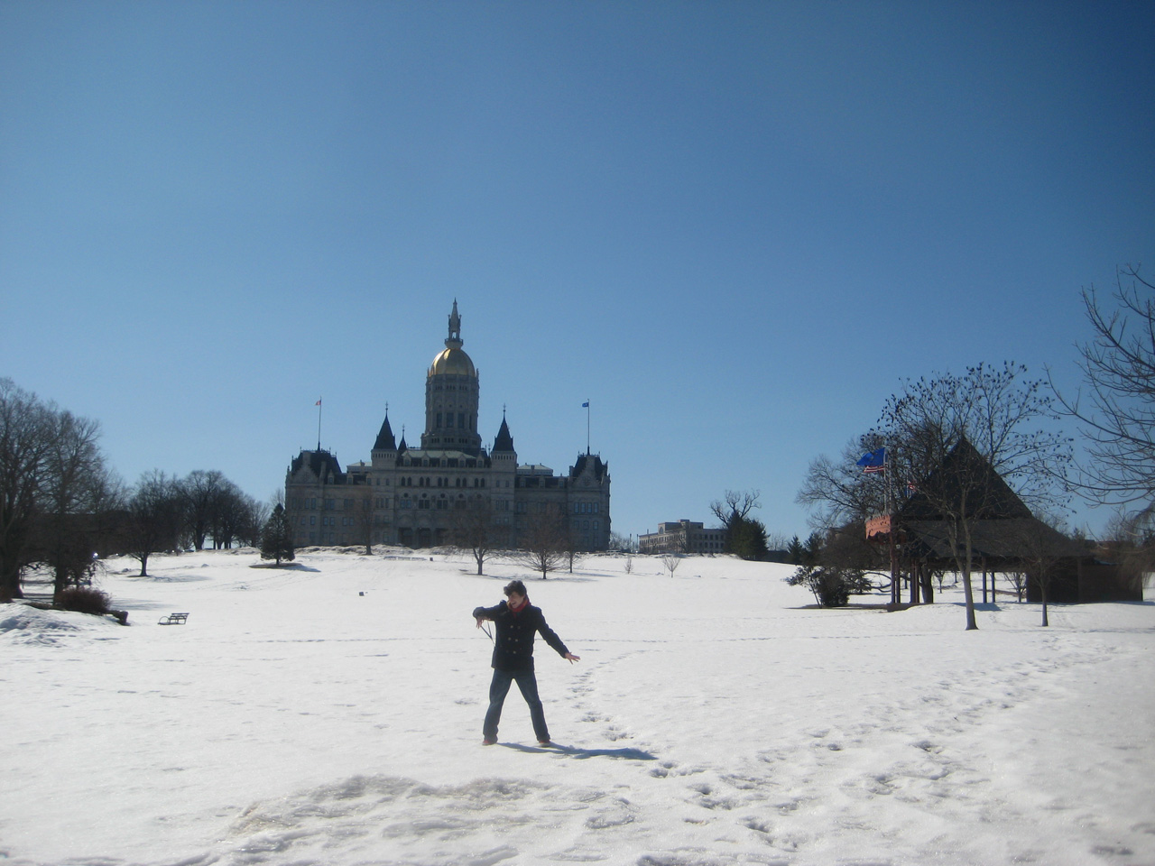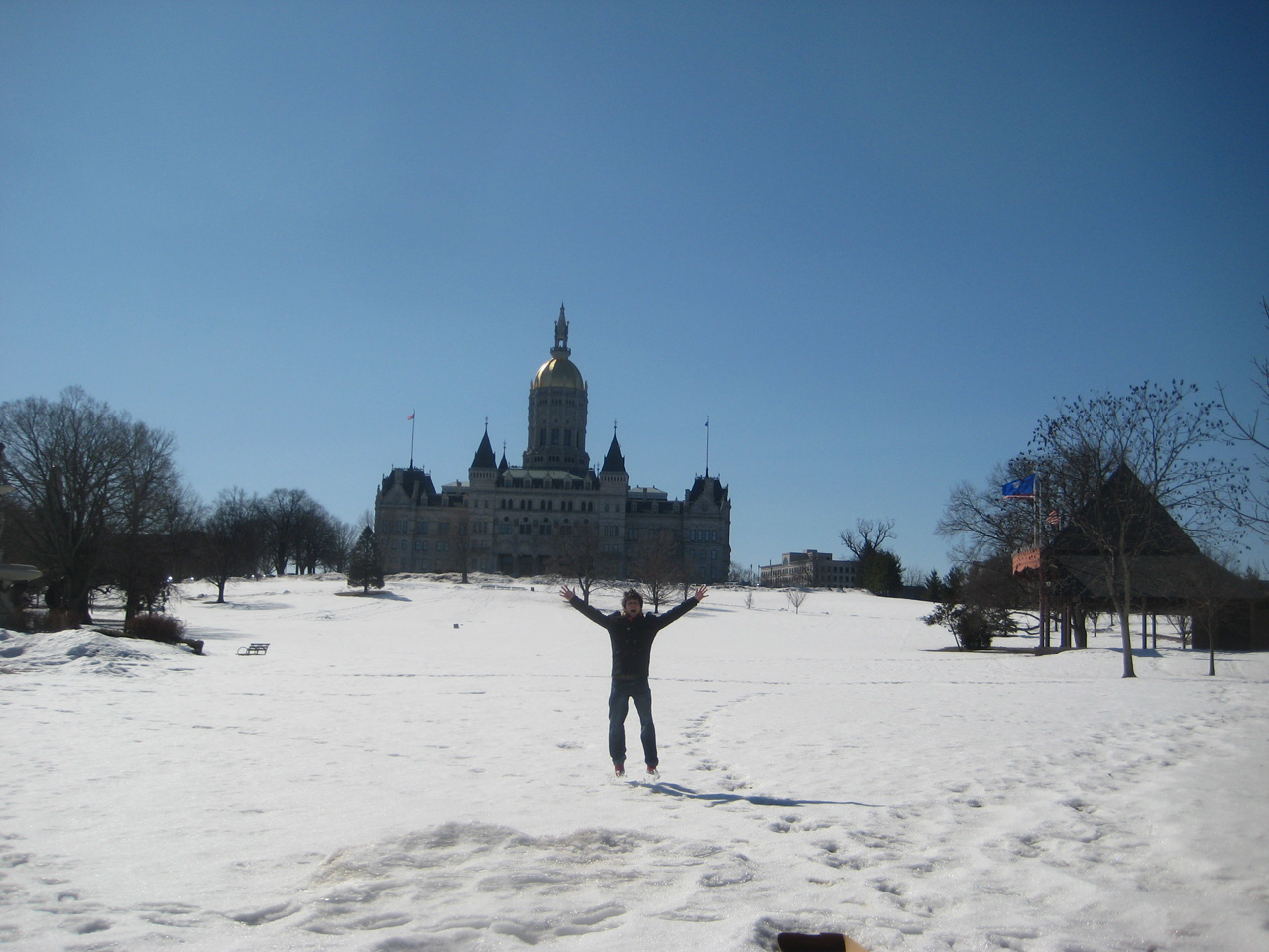Im sonnigen, aber durch den Wind frischen, Manhatten liefen wir den Broadway herunter bis zur NYU, vorbei am Flatiron Building und mit Mittag auf einer Parkbank im Union Square Park. Bis zur Rückfahrt kurz vor 17 Uhr waren wir in unzähligen Geschäften, um unseren Ende März wahrscheinlich folgenden Kaufwahn ein wenig vorzubereiten. Danach ging es wieder mit dem Bus zurück nach Hartford. Die Fahrt zog sich durch „Stop and Go“ in New York und späterem Stau auf der Interstate aber sehr in länge und verspätete sich. So kamen wir auch zu spät zum gemütlichen Sit-in von Lauras Kommilitonen.