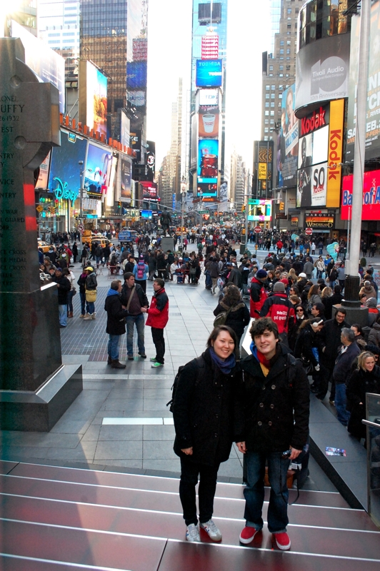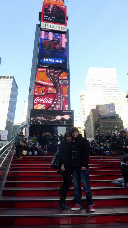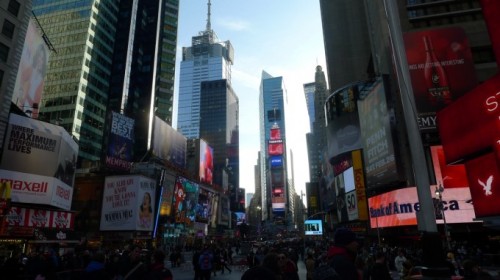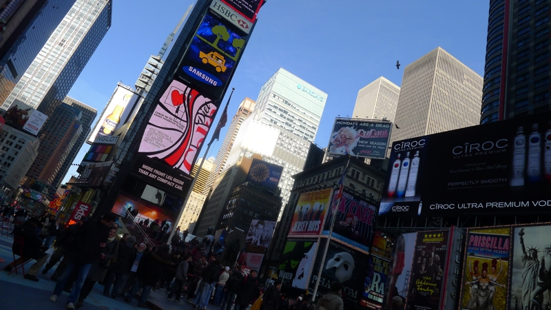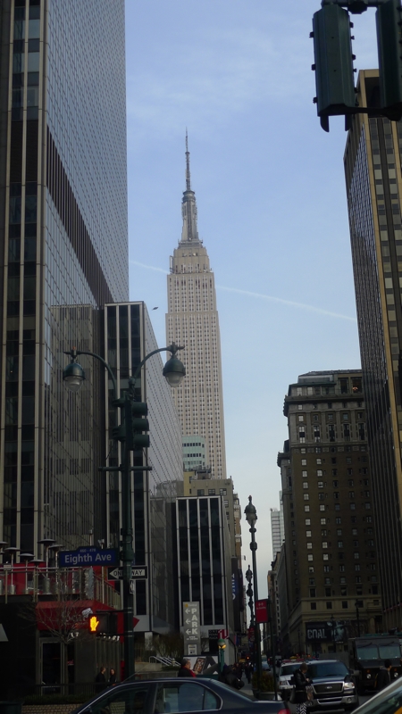 Der Central Park lag wortwörtlich einen Steinwurf entfernt. Wir benutzen die Wege des 350 ha großen Parks als Abkürzung, um von der Upper East Side zur Upper West Side zu gelangen. Im Park gab es viele Jogger, Radfahrer, Autos (ja!), Hunde, Kinder und … Squirrel. Leider blühte noch so gut wie nichts, die Bäume waren kahl. Im Sommer ist das sicher ein, wenn nicht der, schönste Fleck Manhattens. In der Upper East Side ging es auf den Broadway, den wir bis zum Times Square abliefen. Weil das Wetter schlechter wurde und die Füße schmerzten (und nach einem so-lala-Salat für 10 Dollar) ging es um Neun bereits ins Hotel.