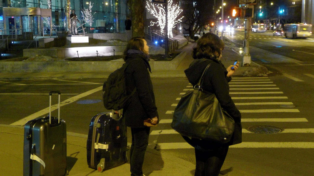 Donnerstag grüßte dann nicht wie die zwei vorherigen Tage die Sonne sondern Regen. Was uns aber nicht sonderlich belastete. Wir hatten zuvor, wie fast den ganzen Urlaub (Ausnahmen hier teilweise SF, Hartford und Boston), gutes Wetter sowie alles Interessante gesehen, weswegen der Tag im Großen und Ganzen dem Shopping galt. Außerdem waren wir die letzten Tage zwei gefühlte Marathons gelaufen, unsere Treter wollten endlich auch ihre Pause. Es ging zuerst zu Macy’s und den ganzen Broadway runter, bis man mit den Tüten in der Hand ein mulmiges Gefühl bekam, ob denn das alles auch in die Koffer passe. Kurz bevor das überprüft werden konnte, gab es ein letztes Mal den leckeren und großen Burrito bei unserer Lieblings-Fastfood-Kette Chipotle und ein Heißgetränk von Starbucks. Laut dem sehr netten Herren, der sich sehr viel Zeit für Jedermann nahm, schreibe ich mich Phabien. Tjoa. Kurz vor’m Verlassen des Landes mit den meisten Geheimdiensten ist also meine Identität doch tatsächlich noch aufgedeckt worden. Ja! Ich bin Hollänne und heiße Phabien! Ich hoffe, mit meinem deutschen Reisepass komme ich morgen dennoch raus?