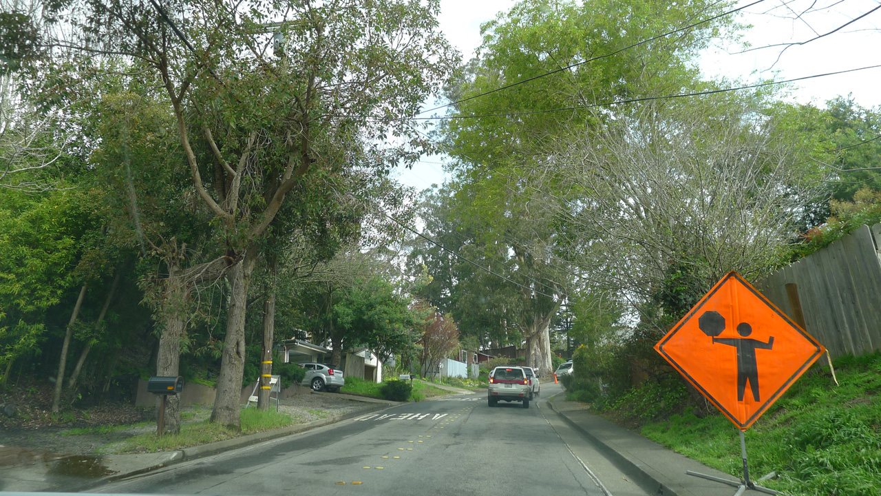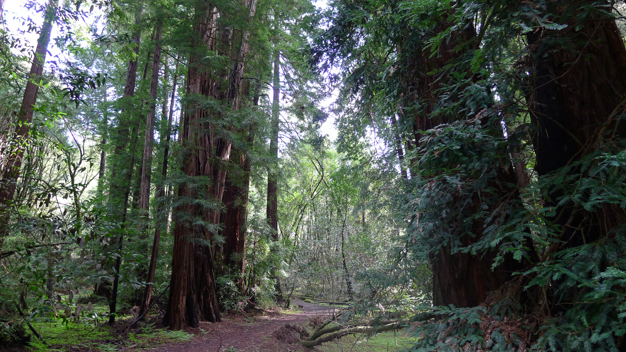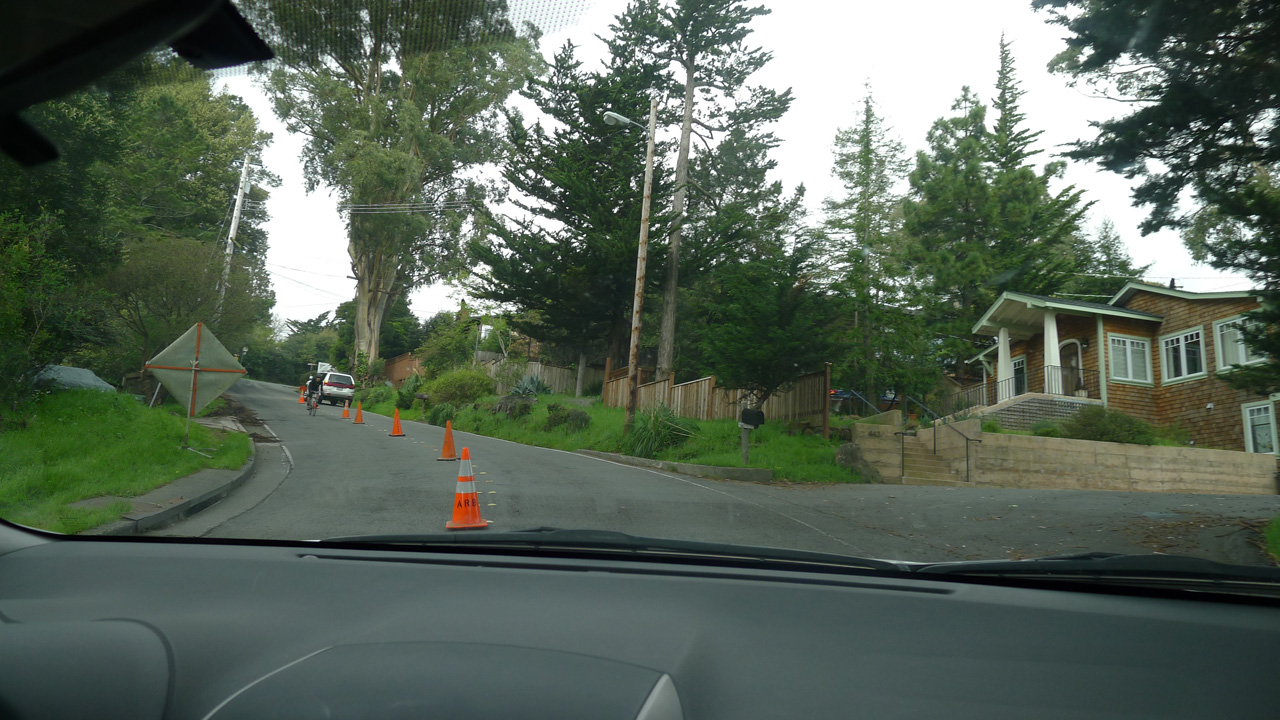 Der Weg zum Wald war ähnlich geschwungen wie die Küstenstraße am Big Sur. Das Gefälle mancher Straßen auf dem Hinweg war unfassbar. Manchmal stand man an einem Stoppschild auf einer Hügelkuppe und konnte die Kreuzung nicht einsehen. Straßenplanung par excellence! Unser geliebtes Navigationssystem hatte selbstverständlich mal wieder Probleme, den richtigen Weg zu finden. Ab einem gewissen Zeitpunkt war der Park jedoch ausgeschildert, worauf wir die „Jetzt rechts abbiegen, danach rechts abbiegen.“- oder „Nach Möglichkeit bitte wenden“-Ansagen von Nikola, der sympathischen deutschen Stimme von CoPilot 8, ignorierten.