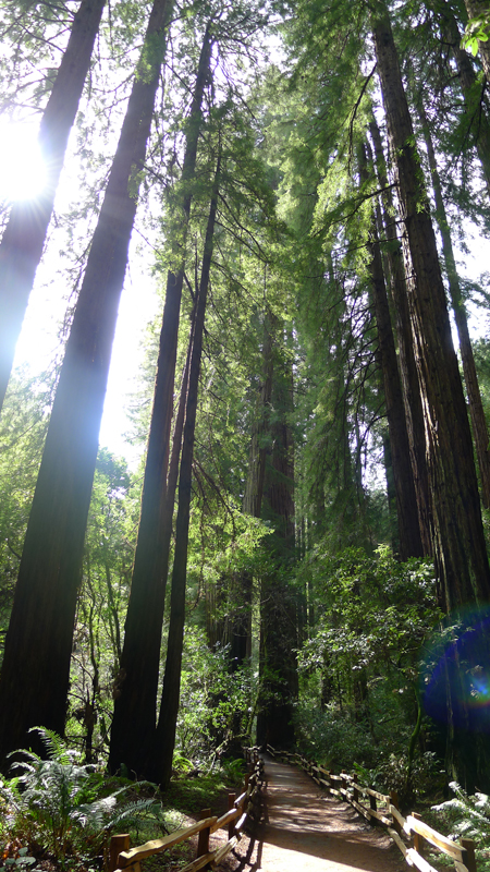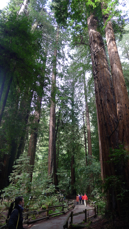 Berkeley liegt im Prinzip nur eine Brücke entfernt von San Francisco, aber es dauerte bis etwa 16 Uhr bevor wir die Stadtgrenze San Franciscos überquerten. Vorher ging es nämlich über die Richmond-San-Rafael-Bridge (John F. McCarthy Memorial Bridge) Richtung Muir Nationalpark, wo man Riesenbäume bestaunen konnte. Zwar sind die Bäumen (wohl) nicht ganz so riesenhaft wie im Redwood Nationalpark – aber immer noch deutlich größer als alles, was man in einem deutschen Forst finden kann.