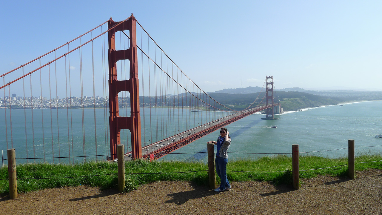Die Golden Gate Bridge, für uns wortwörtlich das goldene Tor nach San Francisco, lag fast einen Steinwurf entfernt von Sausalitors. Bevor es über die Brücke ging, fuhren wir erstmal auf einen Aussichtspunkt, von dem man bei klaren Himmel und Sonnenschein einen wunderbaren Blick auf die Golden Gate und der Stadt hatte.