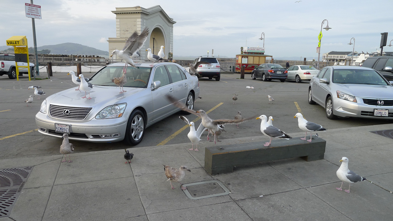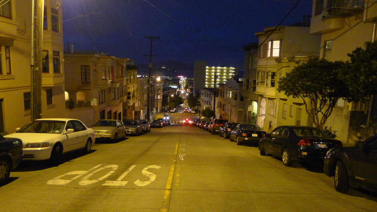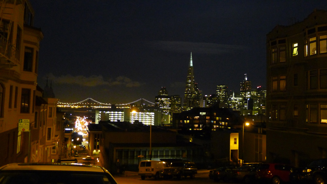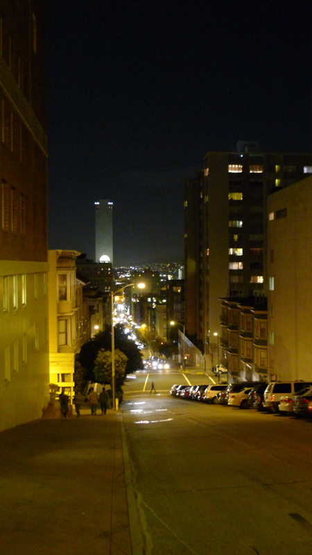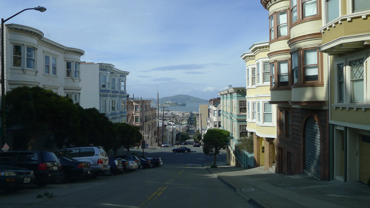 Weil wir das Auto einen Tag vorher abgeben wollten (Parken zu teuer/Auto in San Francisco unnötig), waren wir zwischenzeitlich etwas im Stress. Hertz machte um 17 Uhr dicht, wir checkten etwa halb ein. Also eine gute halbe Stunde für die Fahrt. Der Weg zur Hertzstation am Fisherman’s Wharf zeigte uns bereits die berüchtigten Straßen der Stadt. Es ging steil bergauf um gleich wieder bergab zu gehen. Und das manchmal wirklich mit hohem Gefälle. Das Auto kämpfte beim Anfahren. Gott sei Dank musste ich mir wegen der Automatik keinerlei Gedanken um die Kupplung machen. Zu Hertz schafften wir es rechtzeitig und waren nun zum ersten Mal autolos.