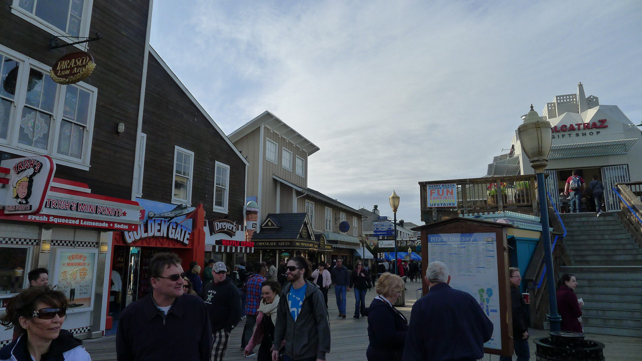 Direkt am Fisherman’s Wharf machten wir dann natürlich die Touristentour zum bekanntesten Pier San Franciscos, Pier 39. Wir marschierten hoch und runter, aßen leckere Suppe und traten dann den Weg zurück zum Hotel an. Bei manchen Straßen kam man sich wie beim Bergtsteigen vor. Wegen des St. Patrick’s Day ließen wir den Tag natürlich auch standesgemäß mit einem Bier enden. Bei dem laschen Gebräu machten wir unsere Routenpläne und freuten uns wie kleine Kinder auf den nächsten Tag.