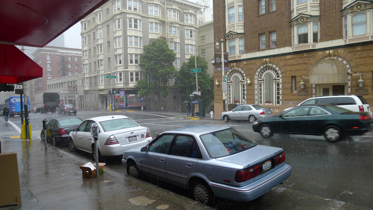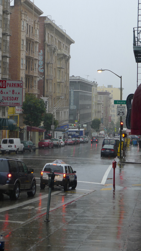 Denn, so ist wohl San Francisco, es regnete. Nicht nur ein bisschen – das ließ sich ja verkraften! Es schüttete als ob ein gewisser Herr über den Wolken gestern fleißig mit den Iren gefeiert hätte und nun zum ersten Mal am himmlischen Pissoir stünde…