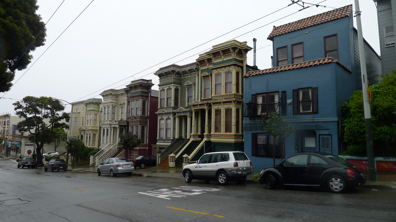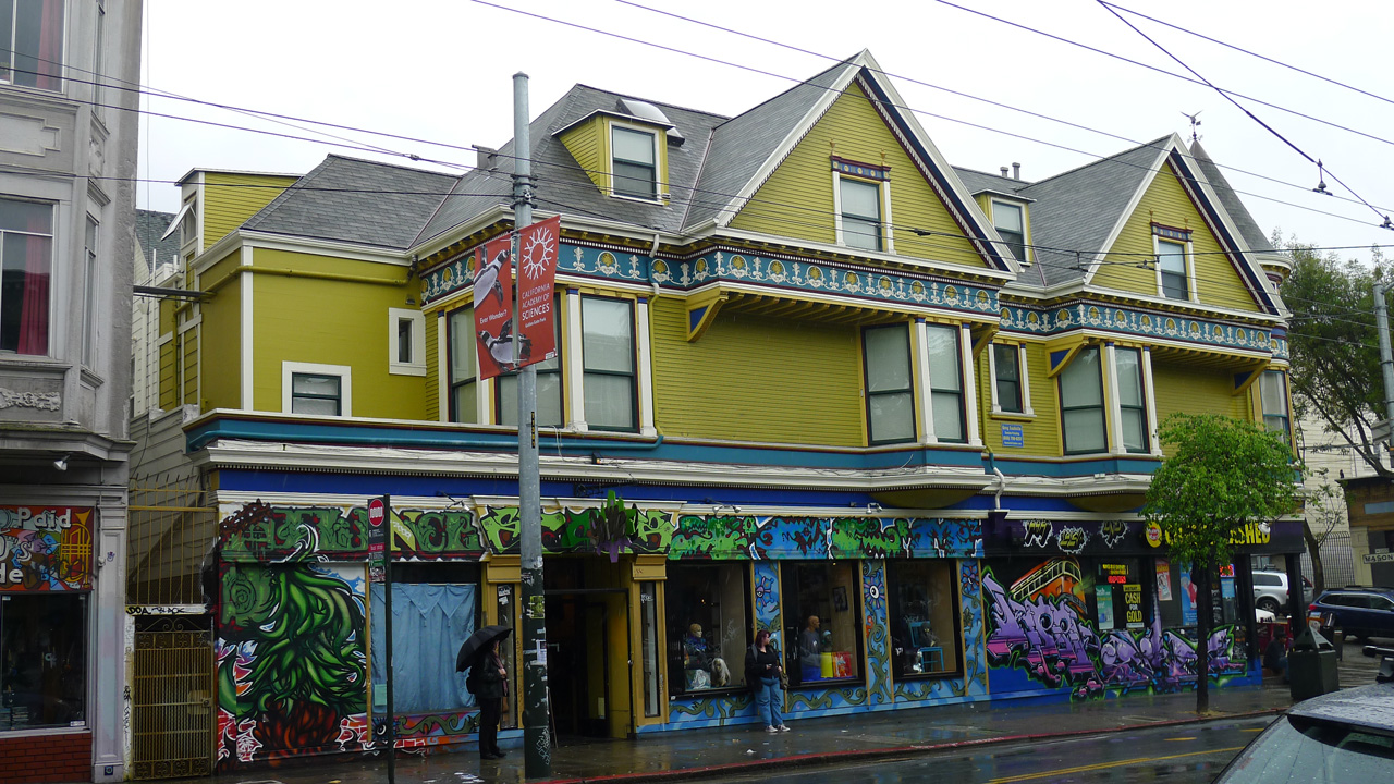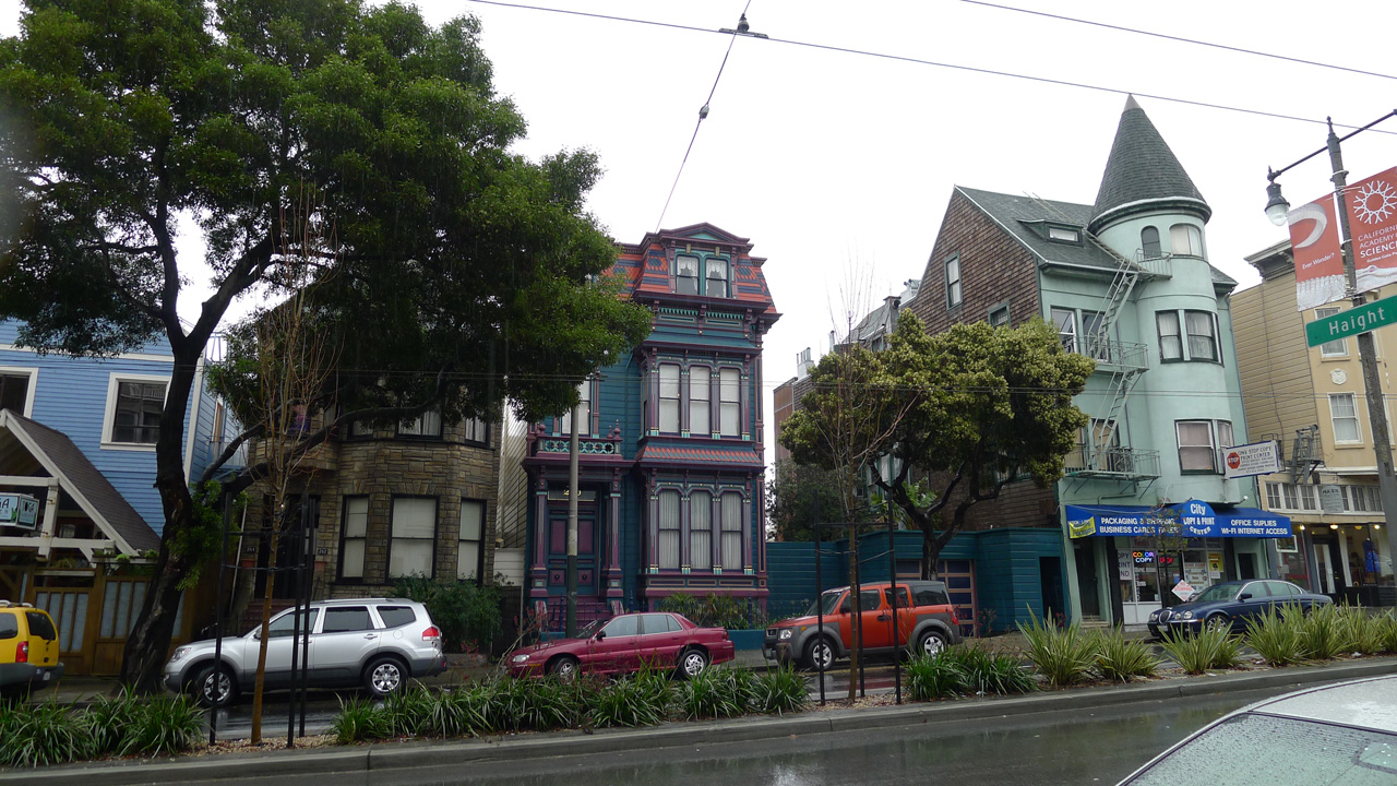 Als ich die Münzen in der Buskasse klingeln ließ, war der charmante Fahrer zufrieden und fuhr mit einem Ruck los, der mich fast aus den Schuhen hob. Nach etwa 15-20 Minuten kamen wir unserem Tagesziel näher. Laut vieler Quellen ist die Gegend um die Haight Street mehrheitlich von Hippies bezogen worden. Was wohl auch noch heutzutage der Fall ist, zumindest wenn man das anhand der illustren Menschen auf der Straße einschätzt. In der Straße gibt es zahrleiche kleine Geschäfte, welche wir auch fast alle betraten. Sei es nur, um dem Regen kurz zu entkommen. Die Läden waren mehrheitlich Klamottenschleudern, wovon viele Vintage, also Second-Hand, waren. Gegessen wurde natürlich auch. Diesmal in einem Thai-Restaurant. Eine kulinarische Facette, die wir bisher nicht genossen hatten. Nach der Stärkung ging es, weil es immer noch regnete, weiter von Geschäft zu Geschäft.