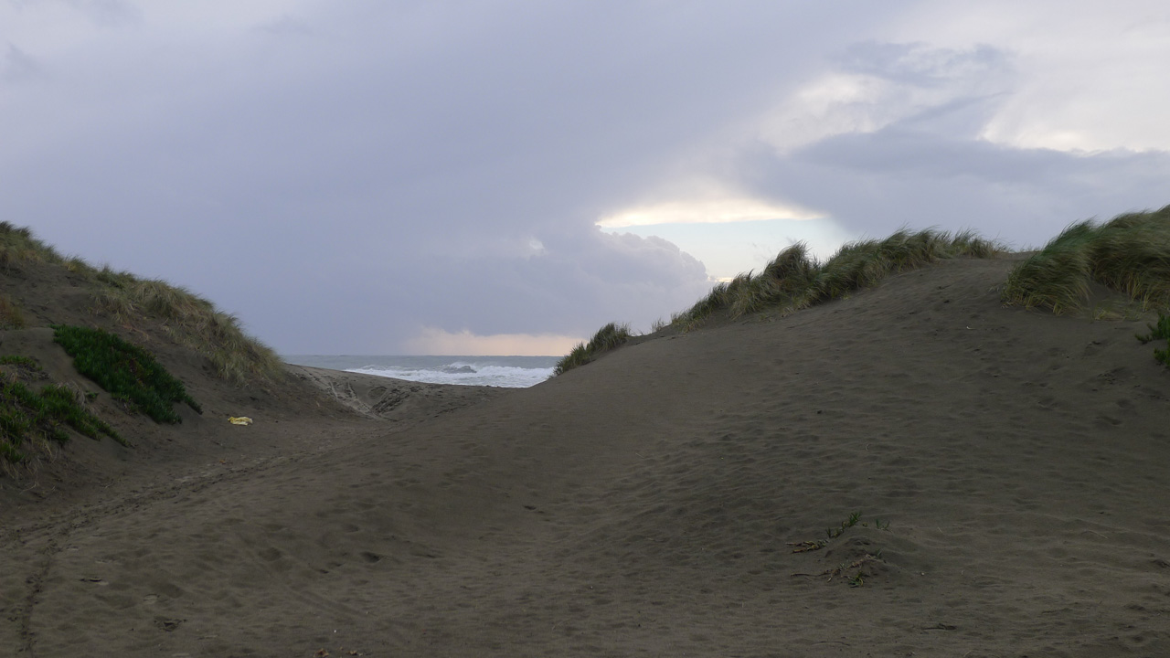 Nichtsdestotrotz liefen wir den ganzen Weg durch den Park zum Pazifik am anderen Ende. Das dauerte etwas mehr als 1 1/2 Stunden. Der Ozean lud mit dem Wetter viele Kite-Surfer ein, die Spaß mit dem Wind und den Wellen hatten. Im Gegensatz zu uns. Wir ließen ein paar mal unsere Kamerablenden schließen und machten uns dann auf den Weg zurück zum Hotel. Wir verspührten jedoch wenig Lust noch einmal den Park zu meistern. Ein Bus hielt direkt am Strand, dessen Streckenführung uns fast vor unser Bettenlager führte. Vorbereitet bezahlten wir auch direkt mit 1$-Scheinen. Man will sich ja nicht zweimal die Blöße geben. (Der Busfahrer war dem Eindruck nach glücklicherweise sowieso kein Berliner sondern durch und durch Kalifornier und damit gut drauf)